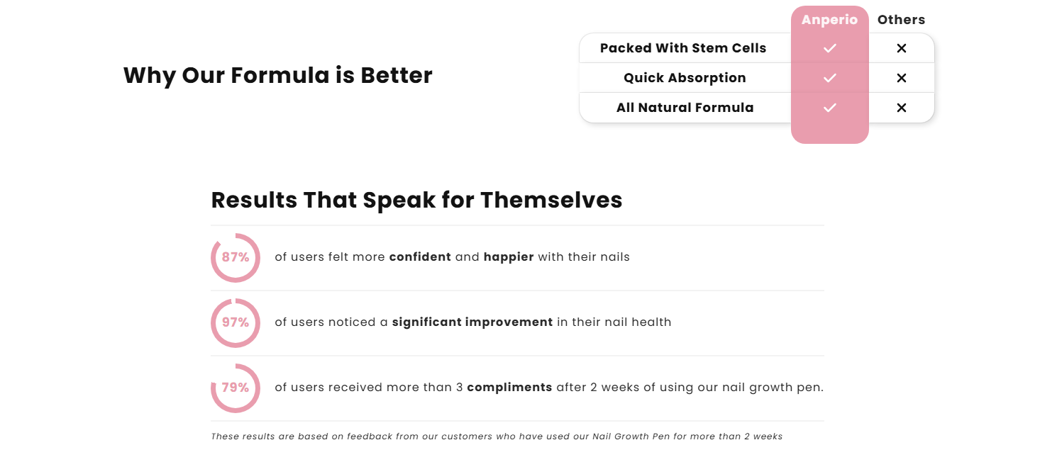 Discover the secret to stunning nails with Anperio'sinnovative products. Our Nail Growth Pen, enriched withstem cells, transforms your nails, making them strongerand healthier. with our all-natural formula, you'll seesignificant improvements in just a few weeks. Whetheryou're dealing with brittleness or slow growth, oursolution is designed for all nail types. Join thousands ofsatisfied customers who have achieved their perfectnails with Anperio. Experience the confidence that comeswith beautiful, healthy nails today